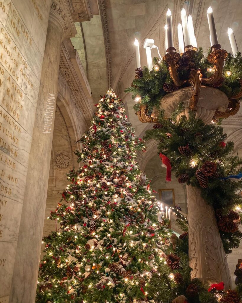 Step inside one of NYC’s most iconic landmarks, and you’ll find one of its most beautiful indoor Christmas trees. ❣️ The New York Public Library’s tree is located in Astor Hall, glowing beneath marble arches and chandeliers. A mix of quiet grandeur and old-world charm that feels straight out of a Christmas classic.