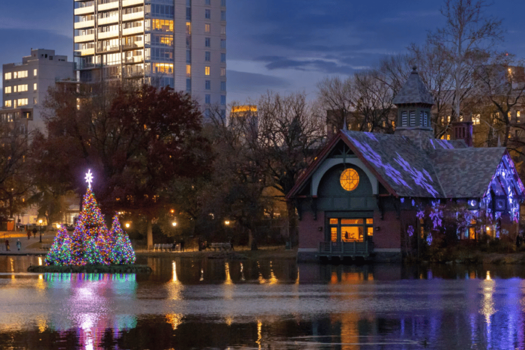 One of NYC’s most enchanting (and often overlooked) holiday traditions. The Floating Christmas Tree in Central Park shines on the calm waters of the Harlem Meer, reflecting the city’s lights like a scene from a winter fairytale.