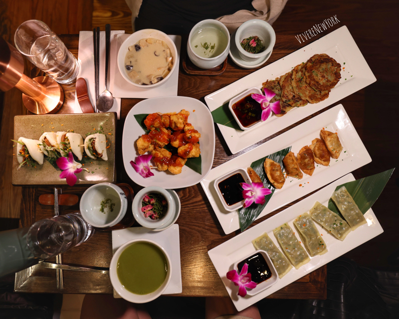 🍃 Franchia Vegan Cafe, 12 Park Ave, offers delicious plant-based cuisine in a super cute atmosphere. It’s on the pricer side – we spent around $75, tip included, each for this amazing dinner, from appetizers to dessert: sooo worthy!!!