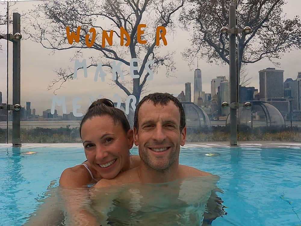 Absolutely, YES! Winter is the best time to soak in the heated outdoor pools while enjoying the NYC skyline. The spa has enclosed heated tunnels, heated igloos (they’re setting them up now), and cozy blankets to keep you warm. 🥶🔥